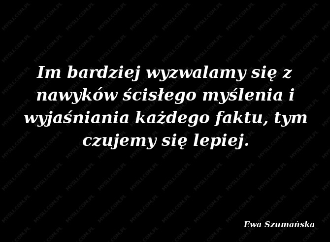Im bardziej wyzwalamy się z nawyków ścisłego myślenia i wyjaśniania każdego faktu, tym czujemy się lepiej.
