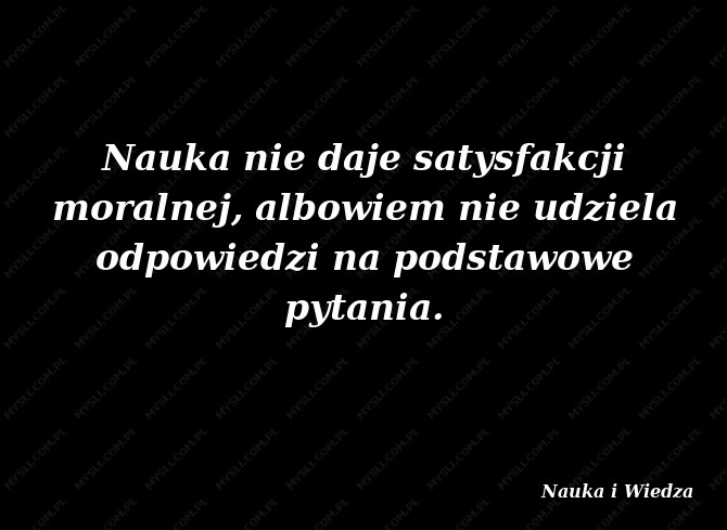 Nauka nie daje satysfakcji moralnej, albowiem nie udziela odpowiedzi na podstawowe pytania.