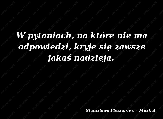 W pytaniach, na które nie ma odpowiedzi, kryje się zawsze jakaś nadzieja.