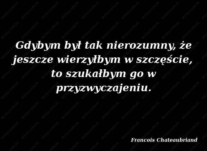 Gdybym był tak nierozumny, że jeszcze wierzyłbym w szczęście, to szukałbym go w przyzwyczajeniu.