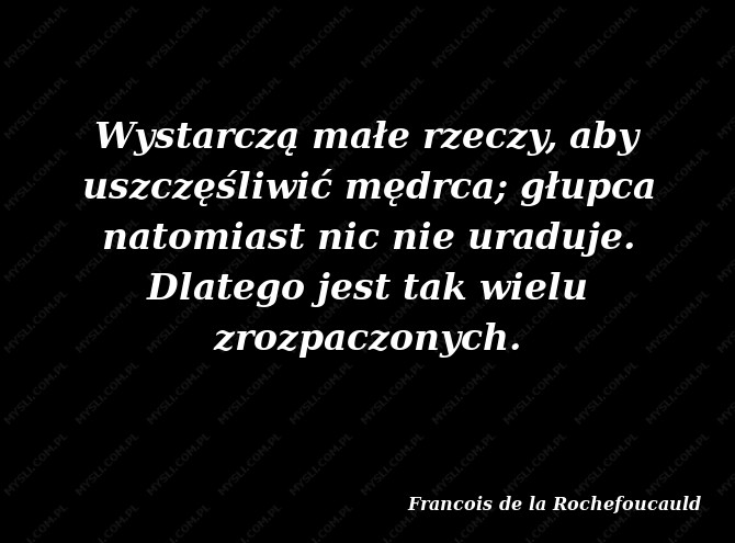 Wystarczą małe rzeczy, aby uszczęśliwić mędrca; głupca natomiast nic nie uraduje. Dlatego jest tak wielu zrozpaczonych.