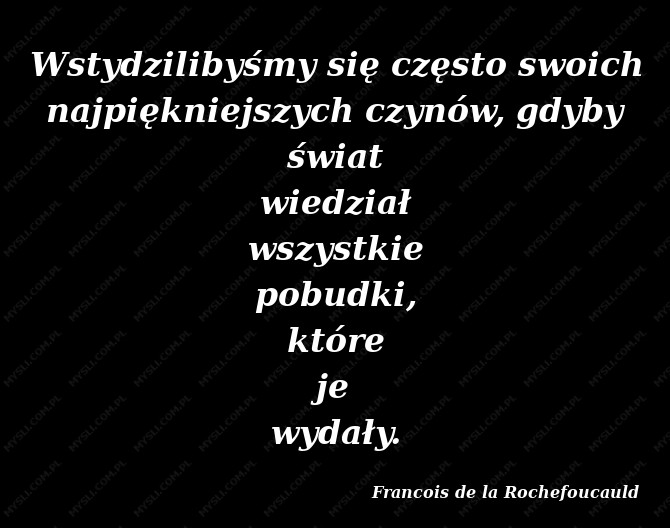 Wstydzilibyśmy się często swoich najpiękniejszych czynów, gdyby świat wiedział wszystkie pobudki, które je wydały.