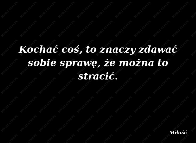 Kochać coś, to znaczy zdawać sobie sprawę, że można to stracić.