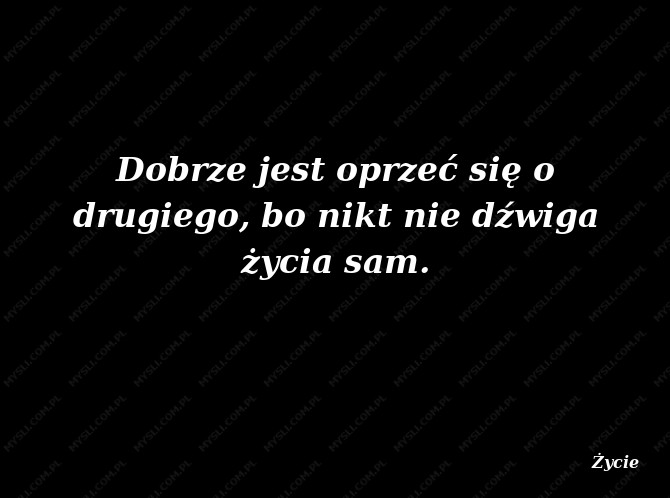 Dobrze jest oprzeć się o drugiego, bo nikt nie dźwiga życia sam.