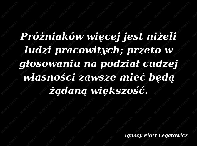 Próżniaków więcej jest niżeli ludzi pracowitych; przeto w głosowaniu na podział cudzej własności zawsze mieć będą żądaną większość.