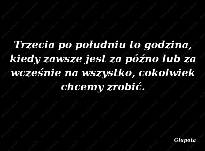 Trzecia po południu to godzina, kiedy zawsze jest za późno lub za wcześnie na wszystko, cokolwiek chcemy zrobić.