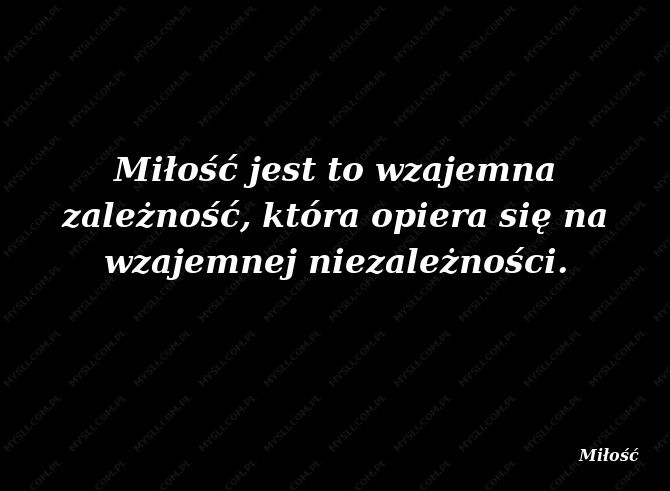 Miłość jest to wzajemna zależność, która opiera się na wzajemnej niezależności.