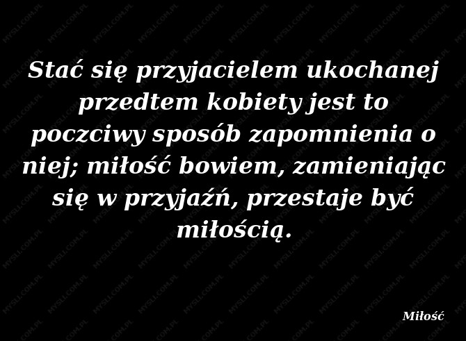 Stać się przyjacielem ukochanej przedtem kobiety jest to poczciwy sposób zapomnienia o niej; miłość bowiem, zamieniając się w przyjaźń, przestaje być miłością.