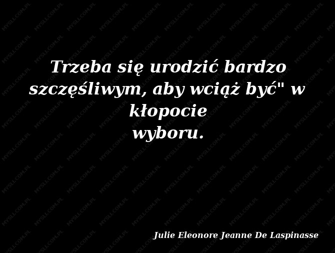 Trzeba się urodzić bardzo szczęśliwym, aby wciąż być" w kłopocie wyboru.