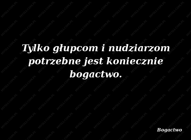 Tylko głupcom i nudziarzom potrzebne jest koniecznie bogactwo.