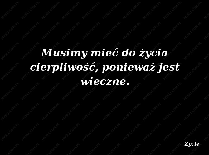 Musimy mieć do życia cierpliwość, ponieważ jest wieczne.