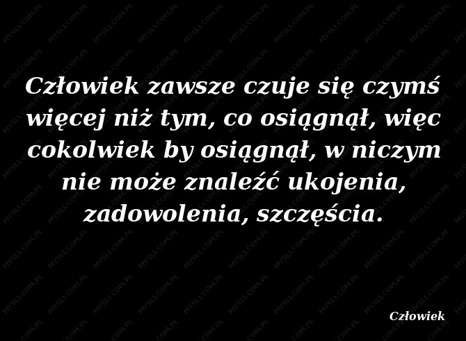 Człowiek zawsze czuje się czymś więcej niż tym, co osiągnął, więc cokolwiek by osiągnął, w niczym nie może znaleźć ukojenia, zadowolenia, szczęścia.