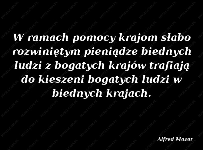 W ramach pomocy krajom słabo rozwiniętym pieniądze biednych ludzi z bogatych krajów trafiają do kieszeni bogatych ludzi w biednych krajach.