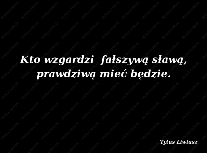 Kto wzgardzi fałszywą sławą, prawdziwą mieć będzie.
