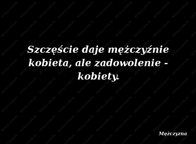 Szczęście daje mężczyźnie kobieta, ale zadowolenie - kobiety.