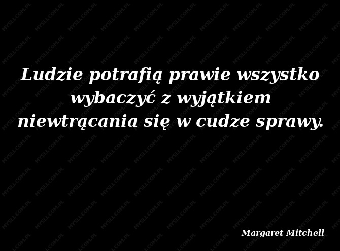 Ludzie potrafią prawie wszystko wybaczyć z wyjątkiem niewtrącania się w cudze sprawy.