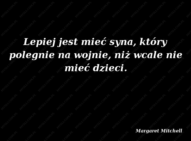 Lepiej jest mieć syna, który polegnie na wojnie, niż wcale nie mieć dzieci.