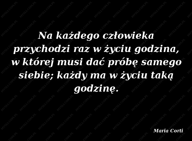 Na każdego człowieka przychodzi raz w życiu godzina, w której musi dać próbę samego siebie; każdy ma w życiu taką godzinę.