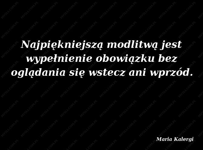 Najpiękniejszą modlitwą jest wypełnienie obowiązku bez oglądania się wstecz ani wprzód.