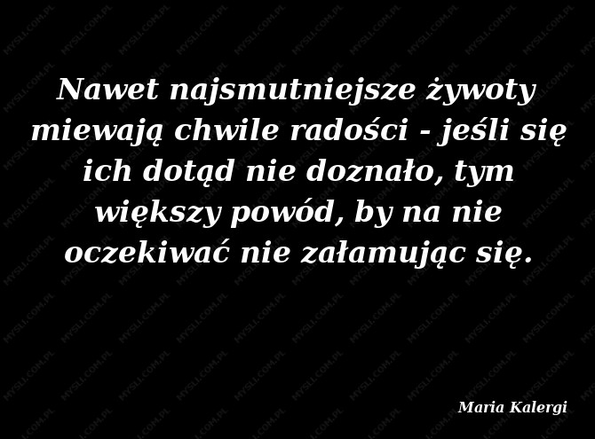 Nawet najsmutniejsze żywoty miewają chwile radości - jeśli się ich dotąd nie doznało, tym większy powód, by na nie oczekiwać nie załamując się.