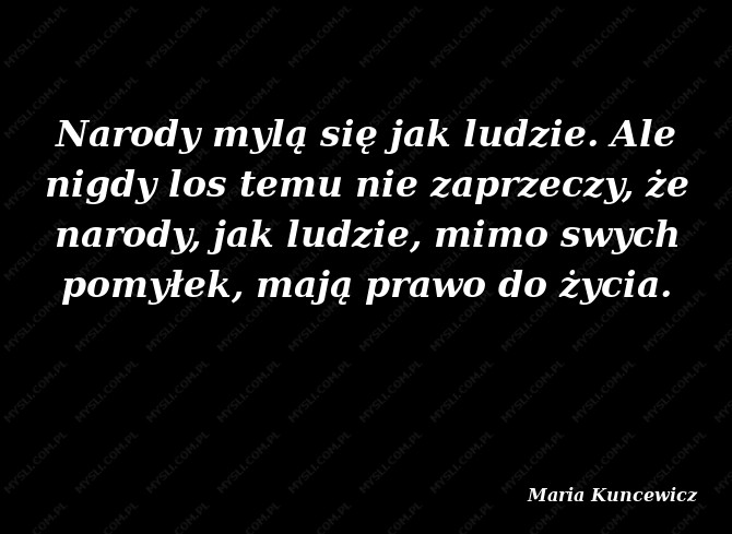 Narody mylą się jak ludzie. Ale nigdy los temu nie zaprzeczy, że narody, jak ludzie, mimo swych pomyłek, mają prawo do życia.