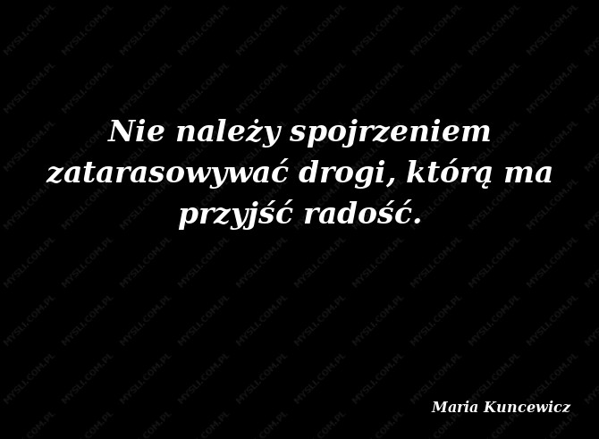 Nie należy spojrzeniem zatarasowywać drogi, którą ma przyjść radość.