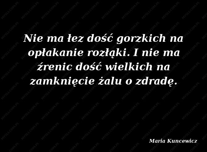 Nie ma łez dość gorzkich na opłakanie rozłąki. I nie ma źrenic dość wielkich na zamknięcie żalu o zdradę.