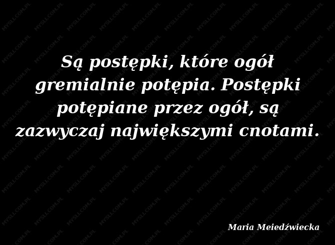 Są postępki, które ogół gremialnie potępia. Postępki potępiane przez ogół, są zazwyczaj największymi cnotami.
