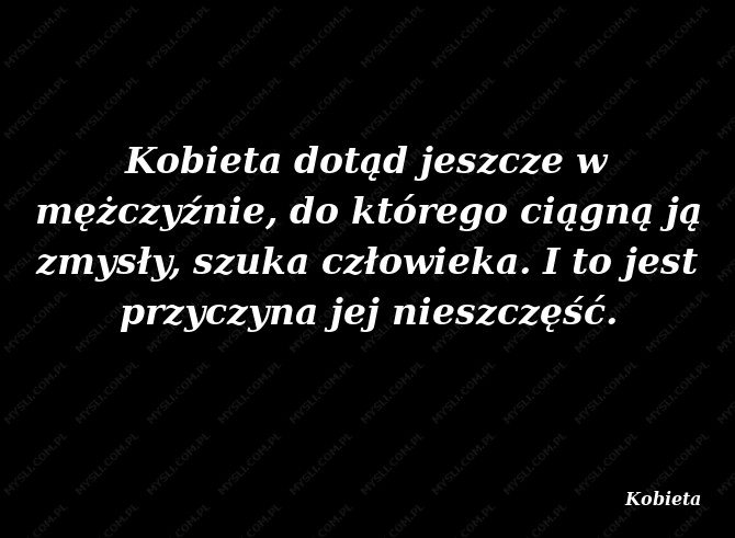 Kobieta dotąd jeszcze w mężczyźnie, do którego ciągną ją zmysły, szuka człowieka. I to jest przyczyna jej nieszczęść.