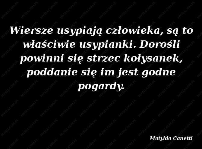Wiersze usypiają człowieka, są to właściwie usypianki. Dorośli powinni się strzec kołysanek, poddanie się im jest godne pogardy.