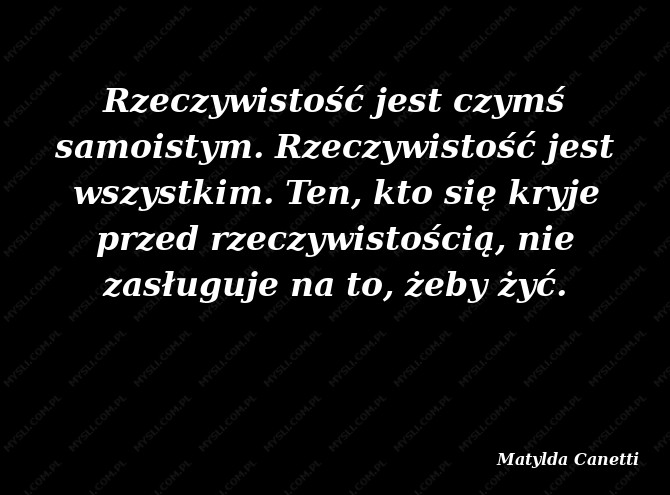 Rzeczywistość jest czymś samoistym. Rzeczywistość jest wszystkim. Ten, kto się kryje przed rzeczywistością, nie zasługuje na to, żeby żyć.