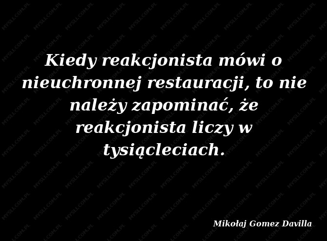 Kiedy reakcjonista mówi o nieuchronnej restauracji, to nie należy zapominać, że reakcjonista liczy w tysiącleciach.