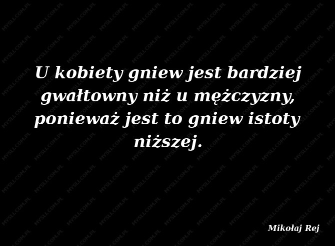 U kobiety gniew jest bardziej gwałtowny niż u mężczyzny, ponieważ jest to gniew istoty niższej.