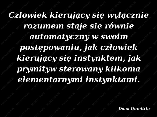 Człowiek kierujący się wyłącznie rozumem staje się równie automatyczny w swoim postępowaniu, jak człowiek kierujący się instynktem, jak prymityw sterowany kilkoma elementarnymi instynktami.
