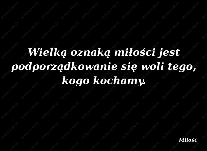 Wielką oznaką miłości jest podporządkowanie się woli tego, kogo kochamy.