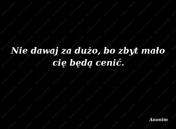 Nie dawaj za dużo, bo zbyt mało cię będą cenić.