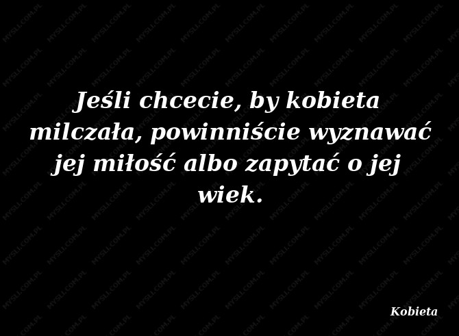 Jeśli chcecie, by kobieta milczała, powinniście wyznawać jej miłość albo zapytać o jej wiek.