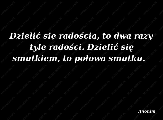 Dzielić się radością, to dwa razy tyle radości. Dzielić się smutkiem, to połowa smutku.