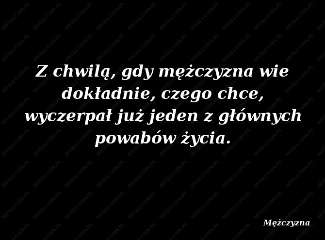 Z chwilą, gdy mężczyzna wie dokładnie, czego chce, wyczerpał już jeden z głównych powabów życia.
