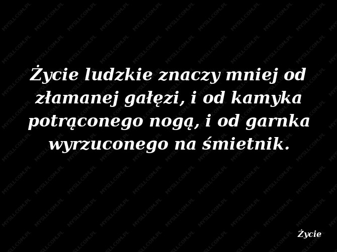 Życie ludzkie znaczy mniej od złamanej gałęzi, i od kamyka potrąconego nogą, i od garnka wyrzuconego na śmietnik.