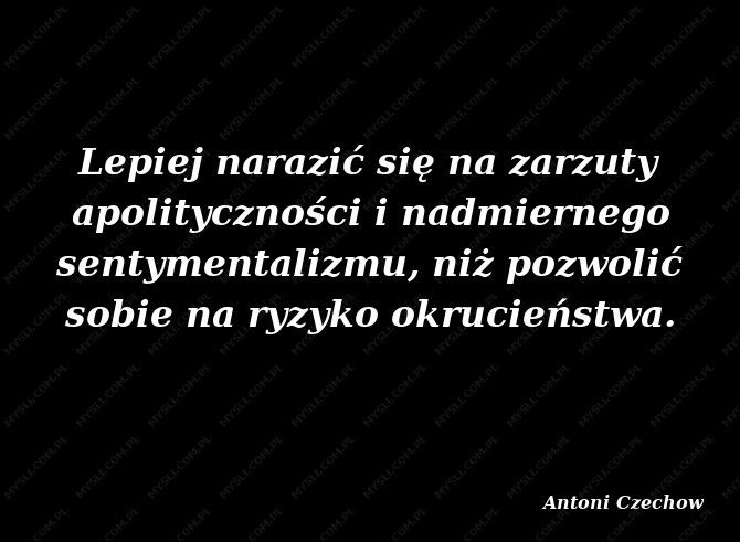 Lepiej narazić się na zarzuty apolityczności i nadmiernego sentymentalizmu, niż pozwolić sobie na ryzyko okrucieństwa.
