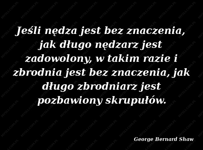 Jeśli nędza jest bez znaczenia, jak długo nędzarz jest zadowolony, w takim razie i zbrodnia jest bez znaczenia, jak długo zbrodniarz jest pozbawiony skrupułów.