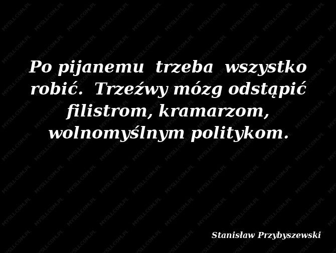 Po pijanemu trzeba wszystko robić. Trzeźwy mózg odstąpić filistrom, kramarzom, wolnomyślnym politykom.