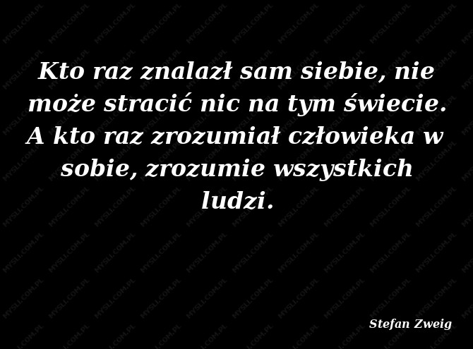 Kto raz znalazł sam siebie, nie może stracić nic na tym świecie. A kto raz zrozumiał człowieka w sobie, zrozumie wszystkich ludzi.