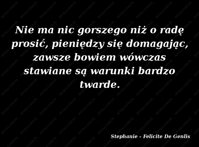 Nie ma nic gorszego niż o radę prosić, pieniędzy się domagając, zawsze bowiem wówczas stawiane są warunki bardzo twarde.