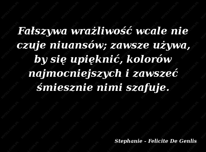 Fałszywa wrażliwość wcale nie czuje niuansów; zawsze używa, by się upięknić, kolorów najmocniejszych i zawszeć śmiesznie nimi szafuje.
