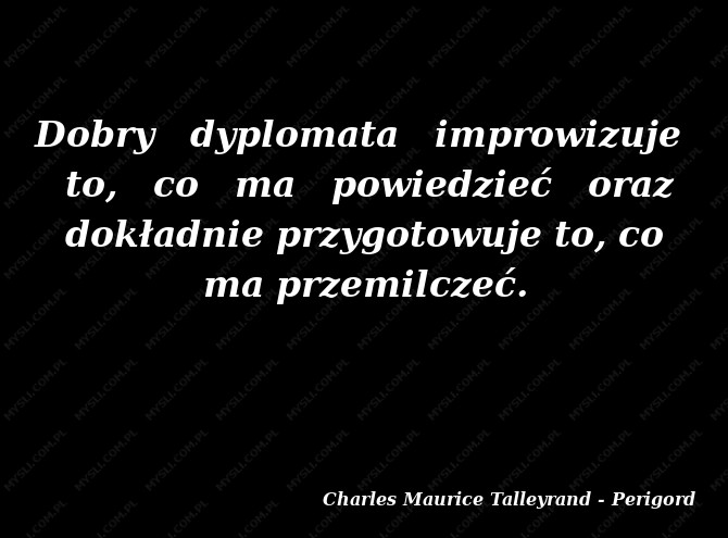 Dobry dyplomata improwizuje to, co ma powiedzieć oraz dokładnie przygotowuje to, co ma przemilczeć.