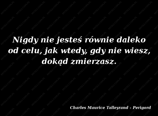 Nigdy nie jesteś równie daleko od celu, jak wtedy, gdy nie wiesz, dokąd zmierzasz.