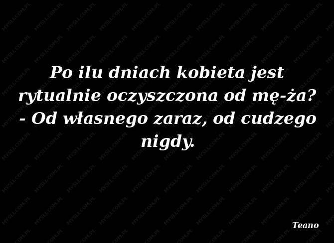 Po ilu dniach kobieta jest rytualnie oczyszczona od męża? - Od własnego zaraz, od cudzego nigdy.