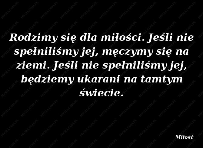 Rodzimy się dla miłości. Jeśli nie spełniliśmy jej, męczymy się na ziemi. Jeśli nie spełniliśmy jej, będziemy ukarani na tamtym świecie.